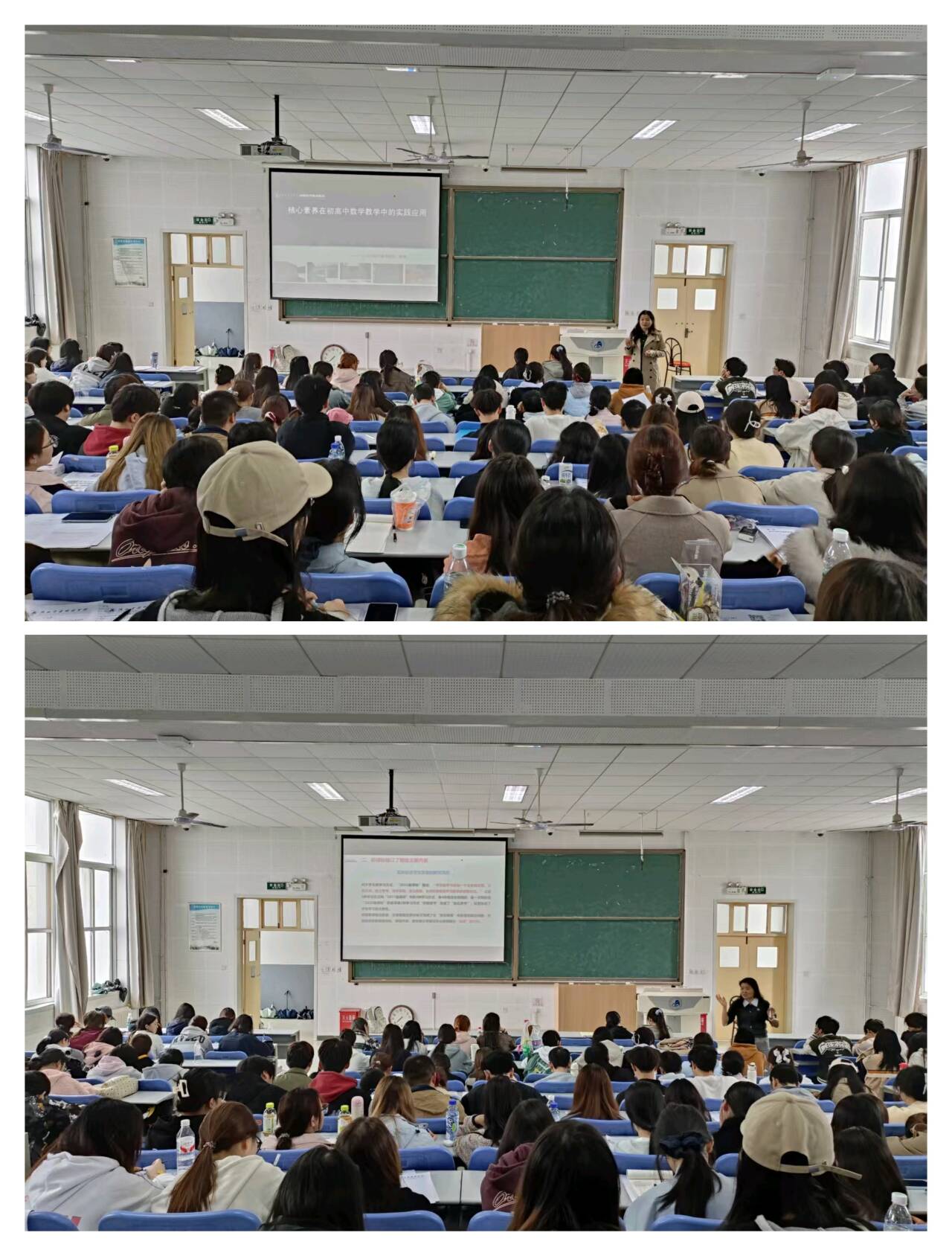 2025年10月17日下午,我院外聘教师费瑛在教学楼B座三层阶梯教室,面向2023级数学与应用数学专业学生,开展了题为《落实数学课程标准的实践与思考》的专题讲座。此次讲座是该专业《中学数学学科教学论》与《中学数学课程标准与教材研究》两门课程的核心教学内容之一,为学生搭建了理论衔接实践的重要桥梁。