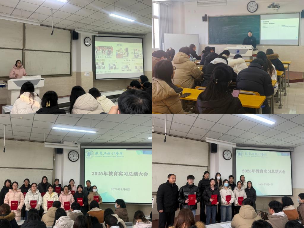 最后,丁剑洁院长作总结讲话。她祝贺全体实习生圆满完成实习、实现显著成长,向实习基地及指导教师致以诚挚感谢,肯定了数学与应用数学专业学子教学实践的扎实表现和应用统计专业学子数据分析岗位的专业素养,赞扬全体学子求真务实、勇于担当的风貌,指出实习提升是学院实践育人理念的生动体现。丁院长对学生提出三点期望:一是坚守初心使命,立足各自专业岗位践行育人与社会服务责任;二是锤炼过硬本领,夯实理论根基、推动理实融合,提升适配岗位需求的核心专业能力;三是保持谦逊进取,在实践中积累经验、锤炼品格,成长为各自领域的优秀人才。
