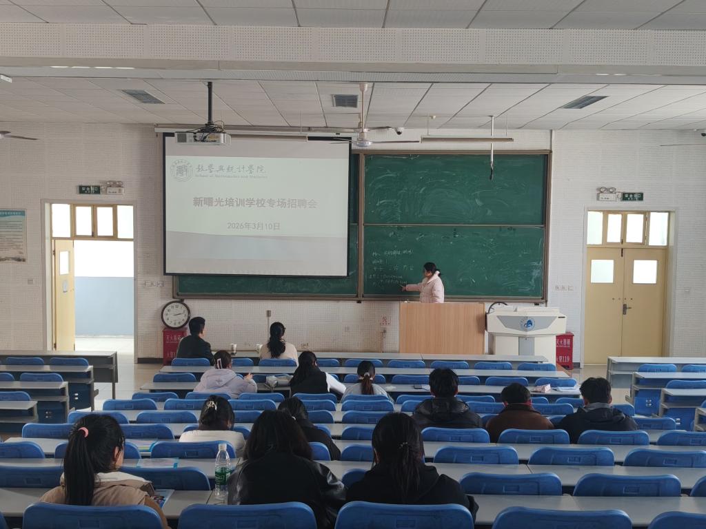 为扎实推进毕业生就业工作,搭建校企对接平台,3 月 10 日,数学与统计学院在积学楼 C3 阶梯教室成功举办新曙光培训学校专场招聘会。数统院2026届数学与应用数学专业全体毕业生参加了本次招聘会,新曙光培训学校冯校长担任宣讲人。