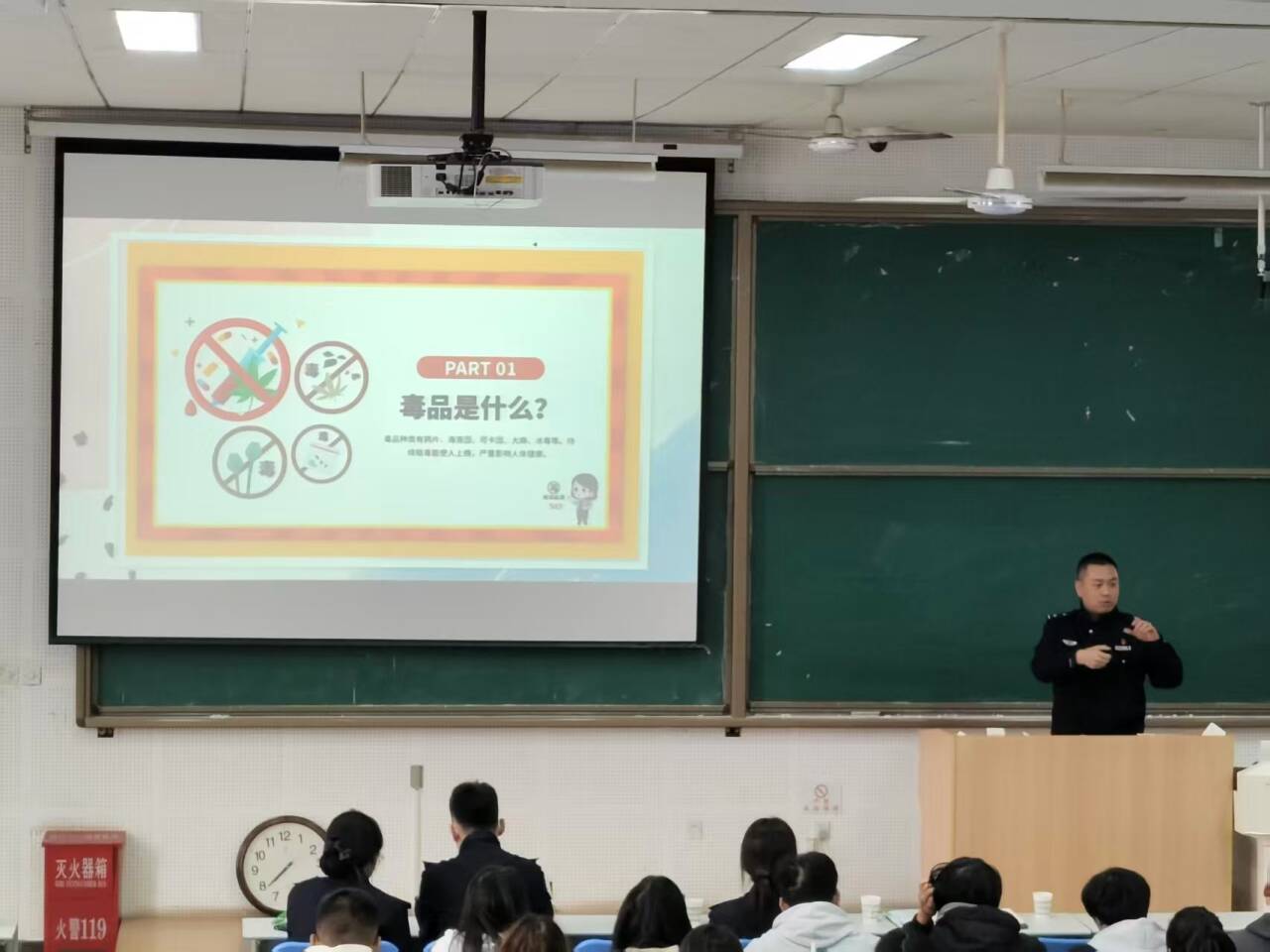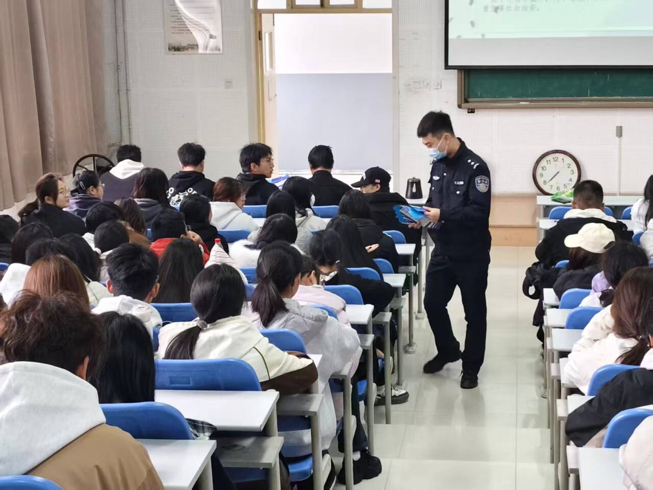 高佳明警官结合高校典型案例,开展全方位安全宣讲针对人身与财产安全,解析校园及周边风险点,传授应急避险技巧;聚焦网络安全与防诈骗,拆解钓鱼网站、学术资料诈骗等新型风险的防范方法;围绕心理安全,引导学生识别情绪危机信号,掌握自我调节与求助途径;在禁毒板块,通过图文演示讲解毒品危害及识别技巧,强化防毒拒毒意识。
