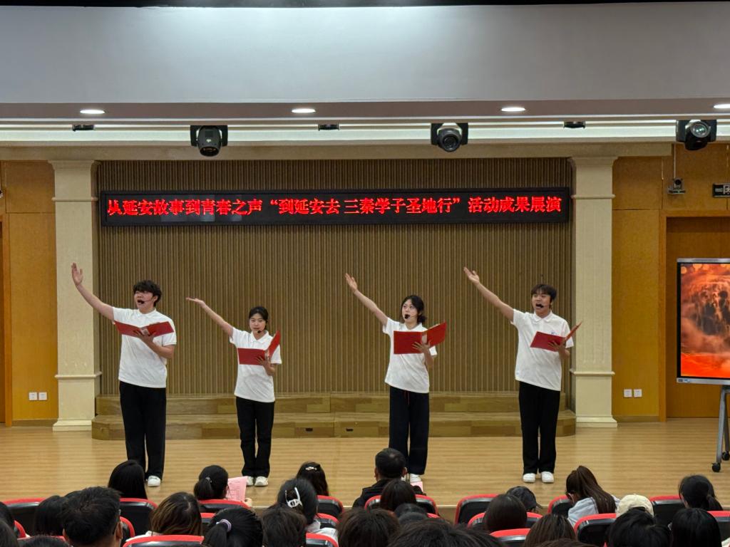 为深入贯彻习近平总书记关于传承延安精神的重要指示精神,生动展现“到延安去”・三秦学子圣地行活动实践成果,引导广大青年学子从红色圣地研学中汲取成长力量,11月27日,数学与统计学院在积学楼C1举办“从延安故事到青春之声”主题成果展演。学院师生代表100余人共同见证红色研学成果的精彩呈现。